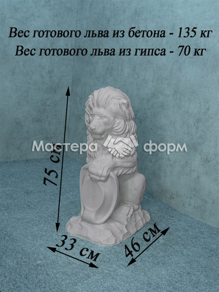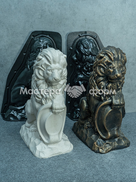 Форма для скульптуры «Лев» изготовлена из прочного АБС-пластика толщиной 3 мм. Конструкция состоит из двух половин, оснащенных специальными замками для идеально ровного и герметичного соединения стыков. Детали надежно фиксируются между собой с помощью болтов или саморезов.