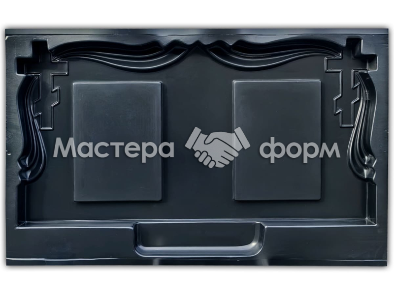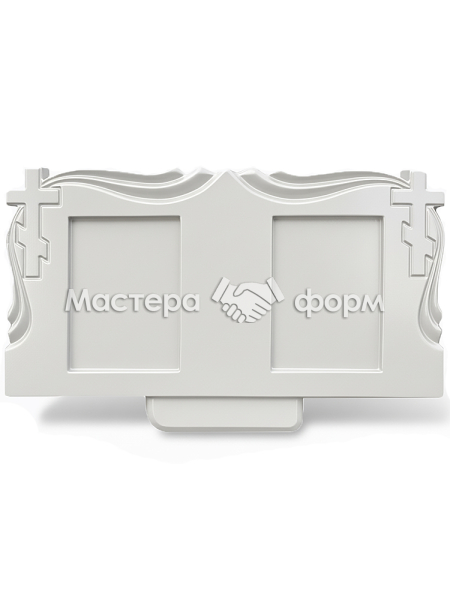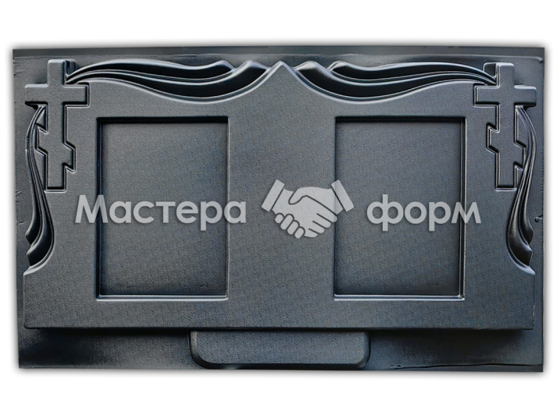 Данная матрица дает глянцевую поверхность и подходит под последующую шлифовку. Конструкция включает две ниши, специально рассчитанные под гранитные вставки 40х20 см для портретов. Форма стабильно держит геометрию в процессе литья. Замки подходят ко всем цветникам, но гармоничнее всего изделие устанавливается под два надгробия №05. Ресурс матрицы — до 100 распалубок.