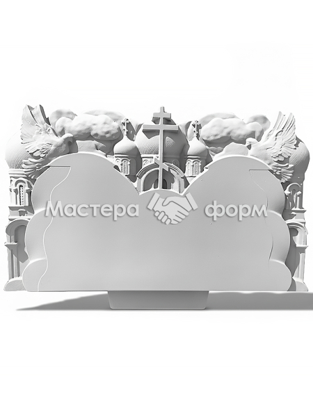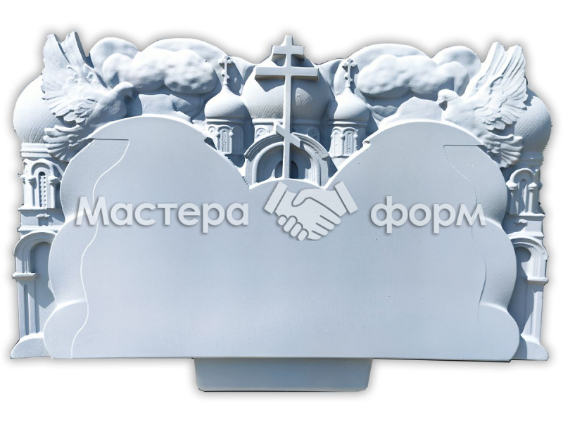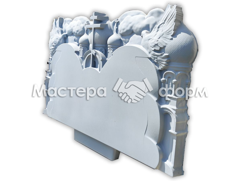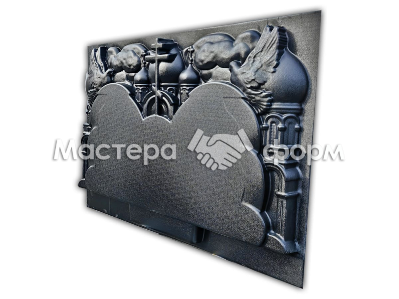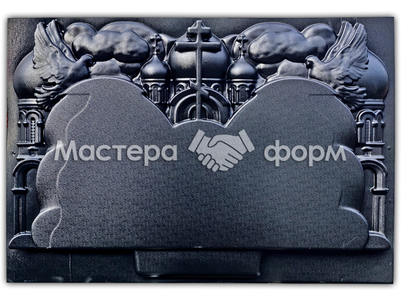 Изделие выполнено из высокопрочного АБС пластика компанией. Плоскость отлично подходит под технологию шлифованного бетона. Особенность модели в том, что табличка из металлокерамики крепится прямо на поверхность в любом удобном месте, возможна установка общего портрета для двоих. При необходимости мы можем увеличить толщину пластика под вас. Рекомендуемые цветники по стилю — No03 или No010.