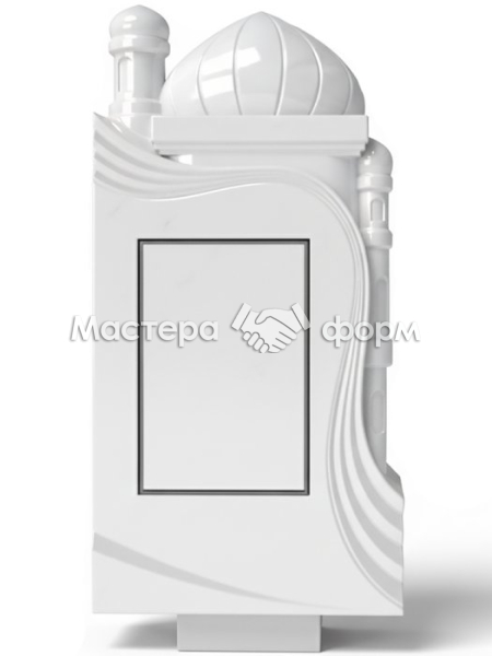 Форма для мусульманского памятника выполнена из АБС пластика, что дает возможность изготавливать бетонные памятники с глянцевой поверхностью. В форме предусмотрена ниша размером 405х305мм, глубиной 25мм для стандартной гранитной плитки под фрезеровку