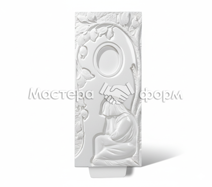 Матрица из высокопрочного АБС пластика гарантирует долгий срок службы и выдерживает до 100 циклов заливки. Одинарная стела отлично шлифуется для создания уникальной фактуры. Предусмотрена ниша под стандартный овал 135х185 мм. Отправляем заказы напрямую с нашего производства в Белгороде. По габаритам компактное изделие гармонично сочетается с цветниками №03 или №010.