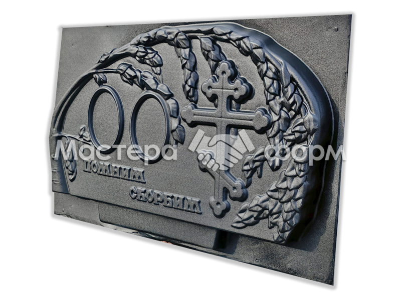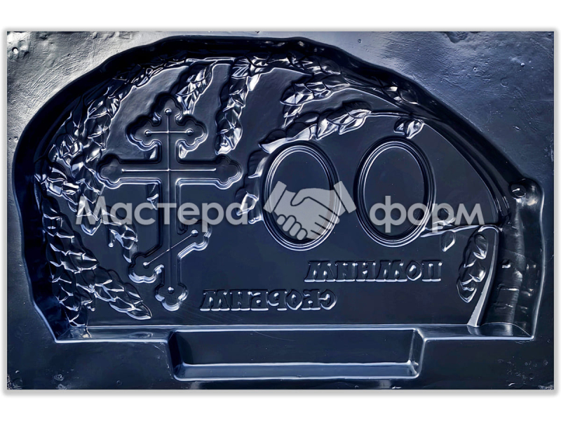 Заказывайте прочные формы для двойных памятников от компании «Мастера форм». Форма из ударопрочного АБС пластика дает красивую глянцевую поверхность, без шлифовки бетона. В стеле предусмотрены две ниши под овальную металлокерамику 130х180 мм. Форма устанавливается под два захоронения, поэтому рекомендуем комплектовать ее двумя надгробиями №05.